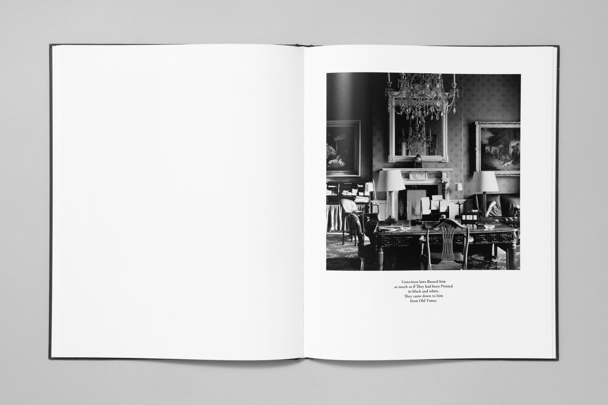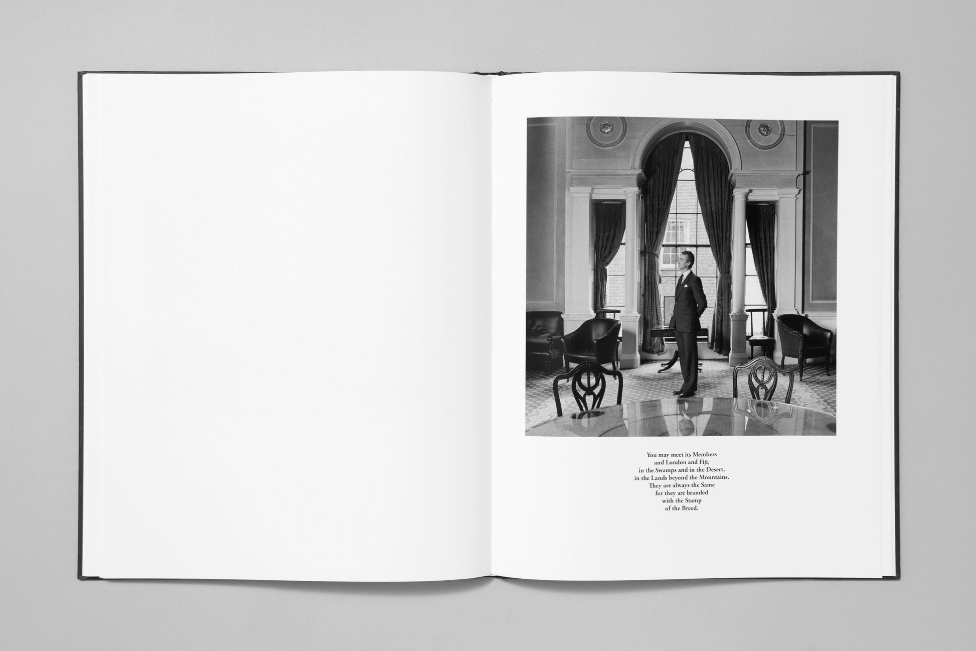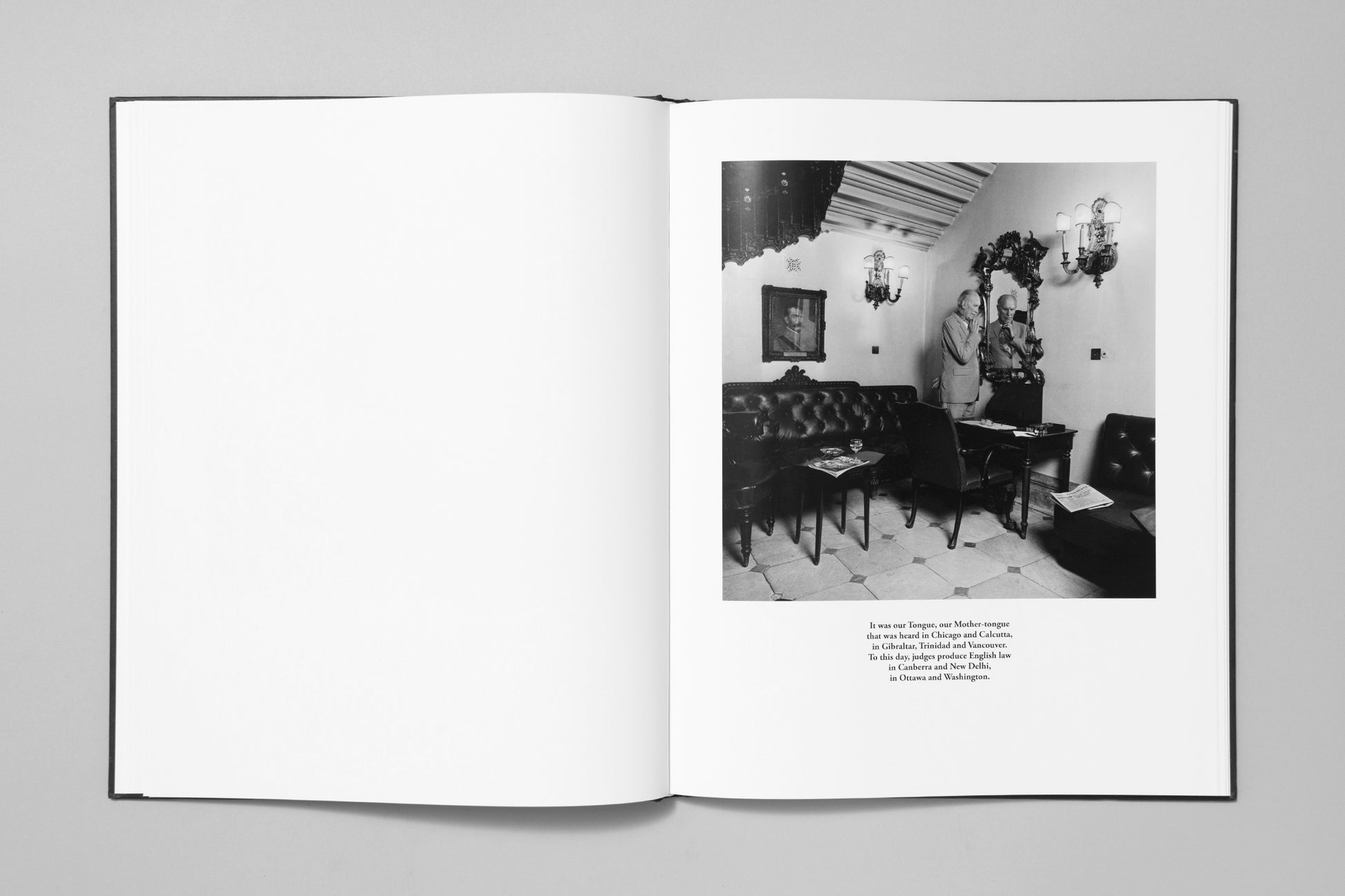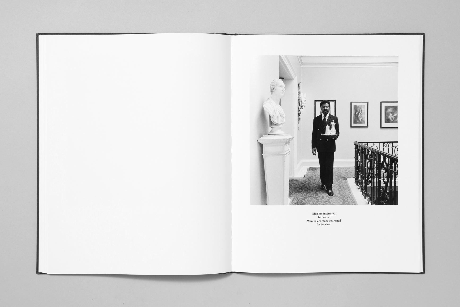 Karen Knorr’s Gentlemen takes us inside the hallowed halls of the most venerable private gentlemen’s clubs of 1980s London, and considers the patriarchal values of the English upper classes with beautifully precise photographs and texts constructed out of speeches of parliament and the news at that time.